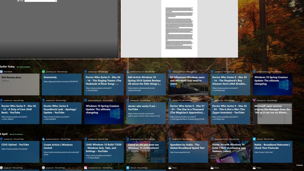 La línea de tiempo se encuentra en el botón “Vista de tareas” y se trata de un nuevo modo de organización cronológica. Básicamente, te permite ver tus actividades en una determinada aplicación o archivo desde cualquier dispositivo en el que hayas iniciado sesión en los últimos 30 días.